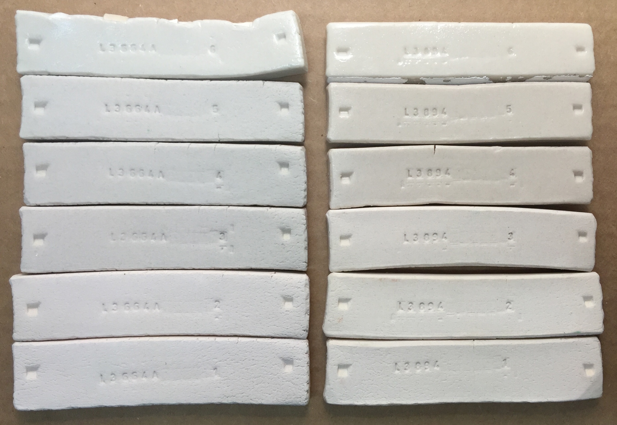 Notes Need better plasticity, better maturity. Need to compromise chemistry match to match physical. Switching to NS from custer (for whiteness), more tile6, less silica. Pictures Testdata SHAB - Shrinkage/Absorption